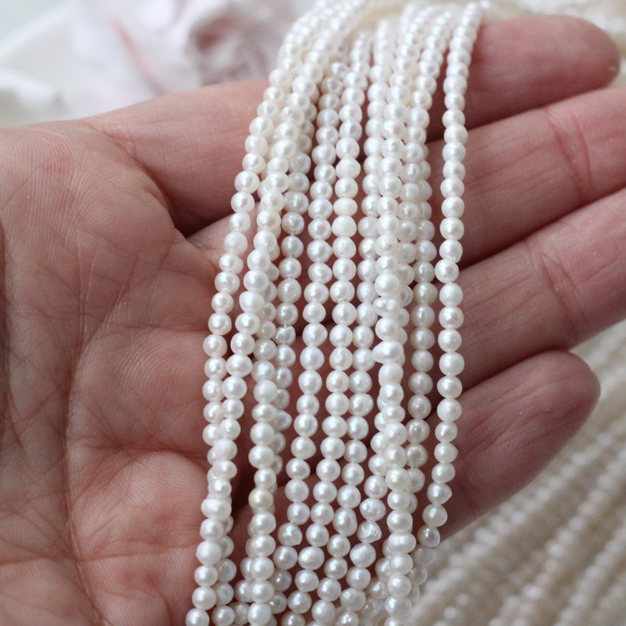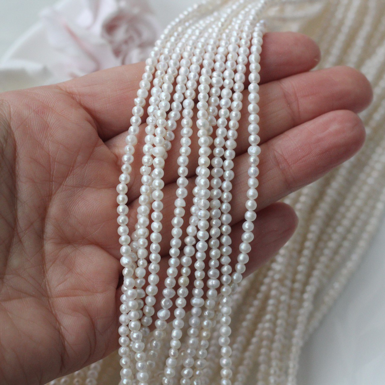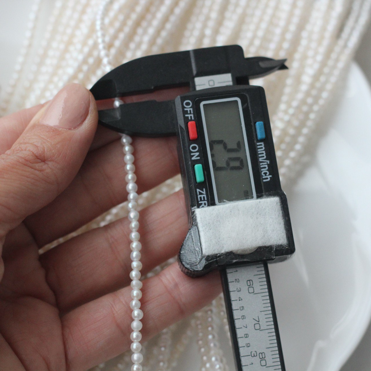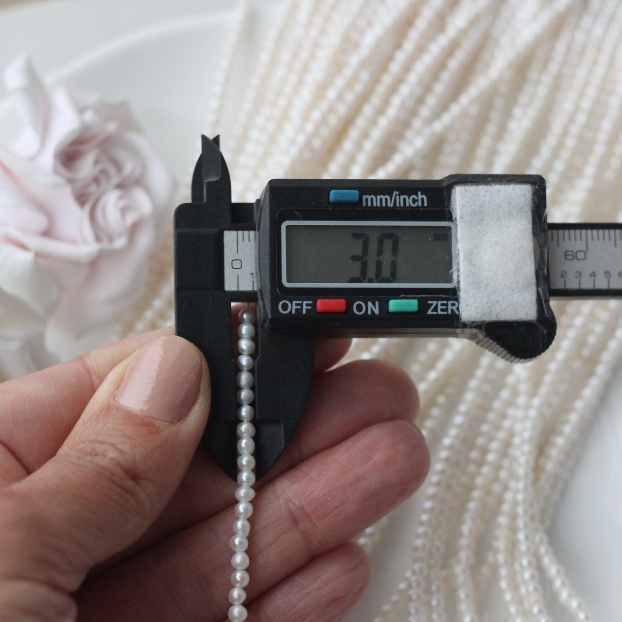 📏 Обратите внимание: размер указывается в среднем по нити, отдельные жемчужины могут иметь естественные отклонения по форме и размеру — это особенность натурального материала. Для наглядности приложили фото с замерами жемчуга. Каждая нить индивидуальна, могут быть расхождения 0,2 мм