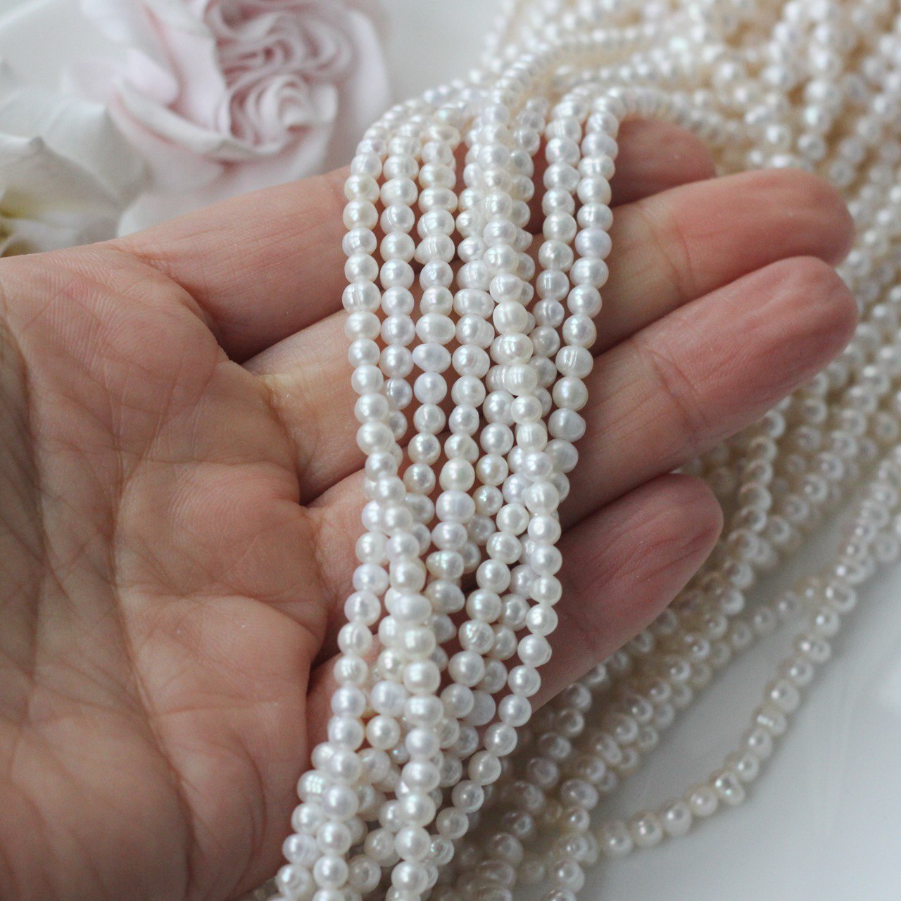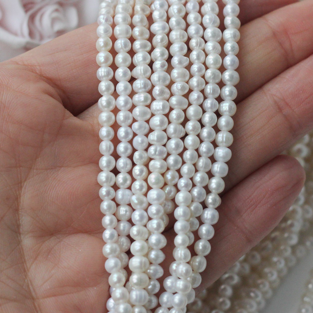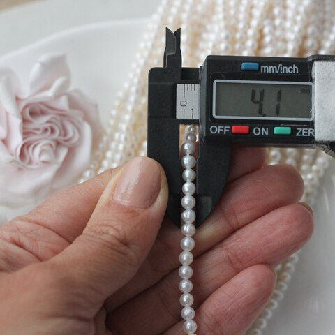 📏 Обратите внимание: размер указывается в среднем по нити, отдельные жемчужины могут иметь естественные отклонения по форме и размеру — это особенность натурального материала. Для наглядности приложили фото с замерами жемчуга. Каждая нить индивидуальна, могут быть расхождения 0,2 мм