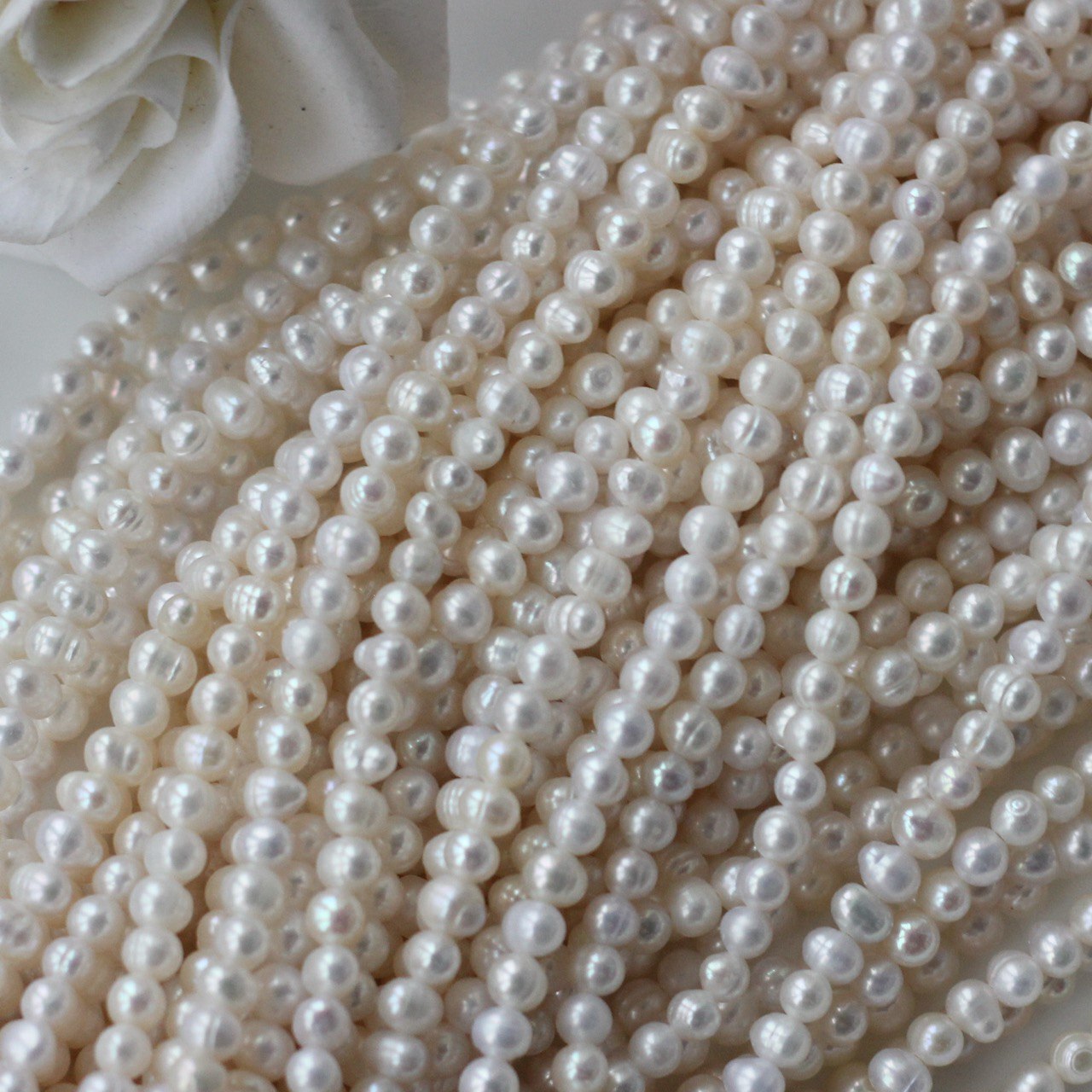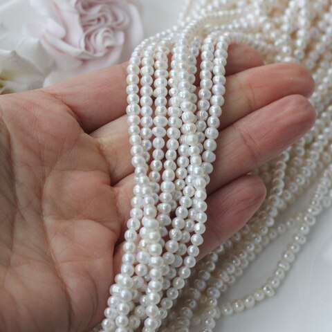 Натуральный речной жемчуг классической округлой формы с мягким перламутровым блеском. Молочный оттенок красиво переливается при разном освещении и придаёт украшениям аккуратность, нежность и утончённость.