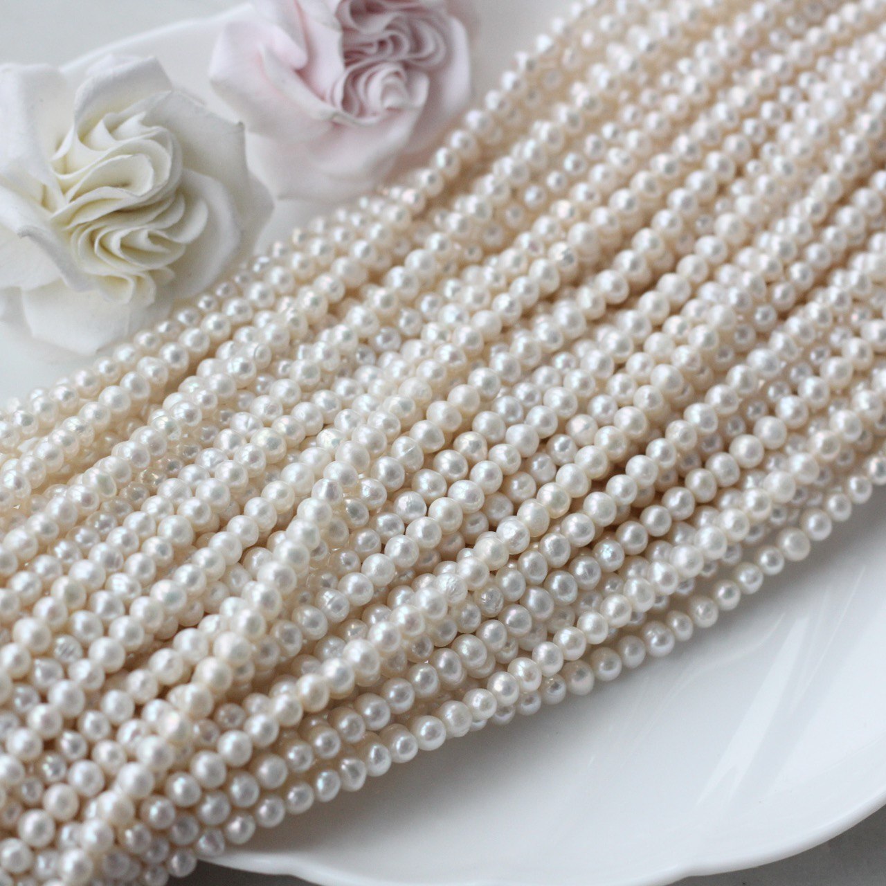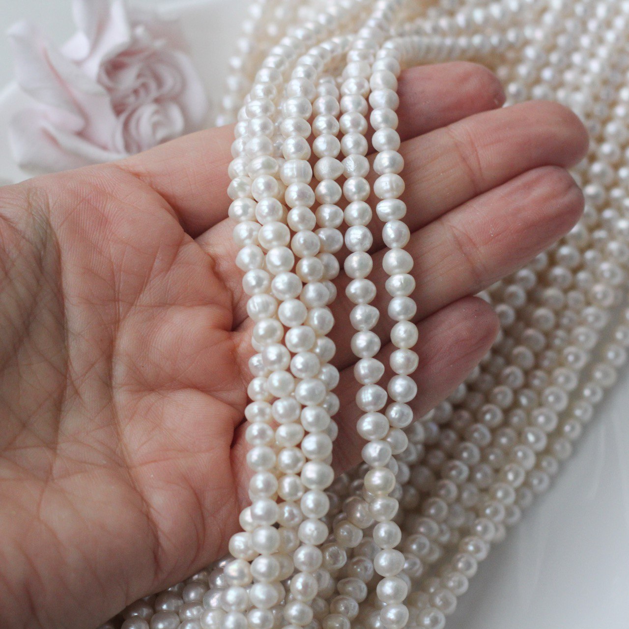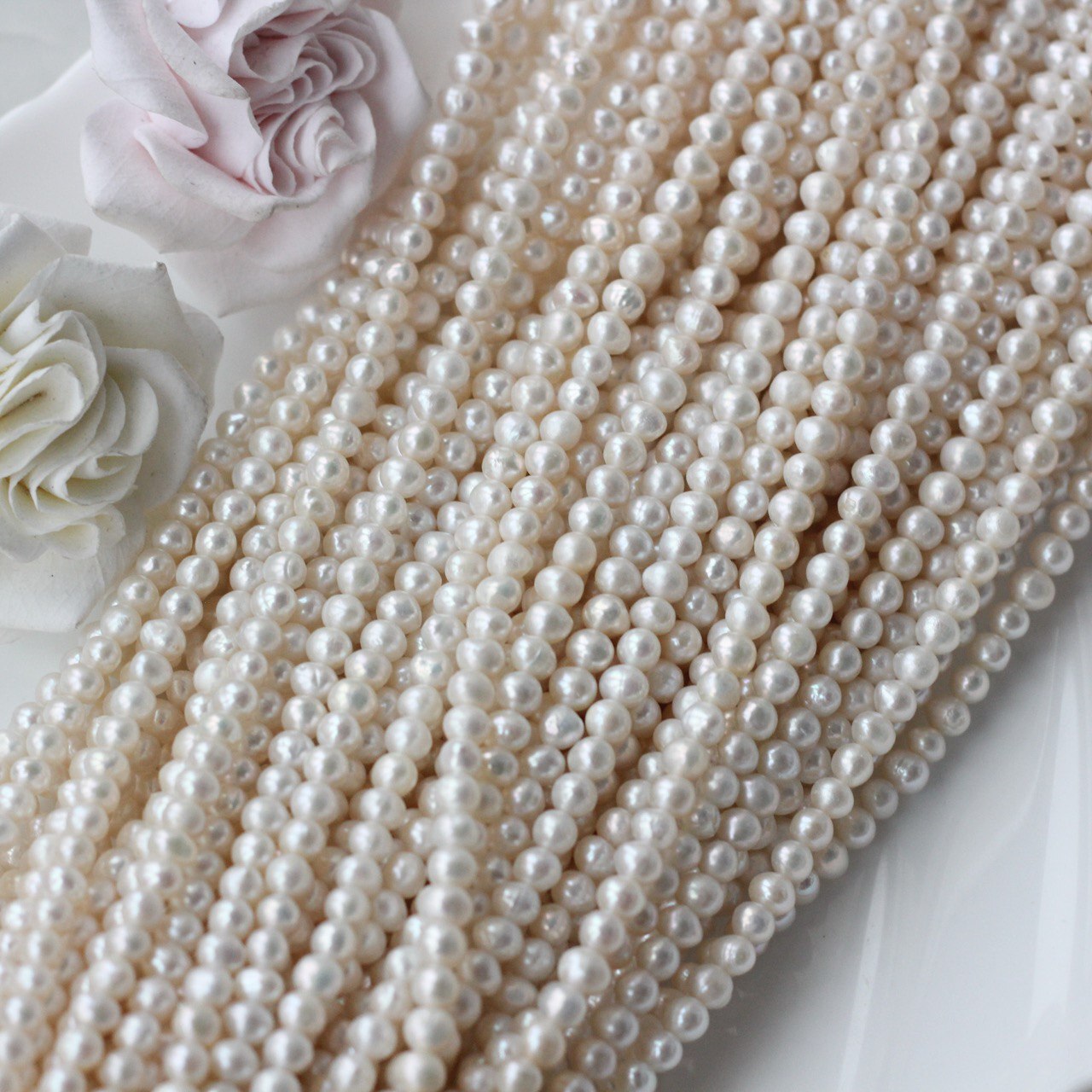 Натуральный речной жемчуг молочного оттенка с мягким, естественным перламутровым блеском. Слегка приплюснутая форма придаёт бусинам живую фактуру и делает готовые украшения более «воздушными» и природными на вид