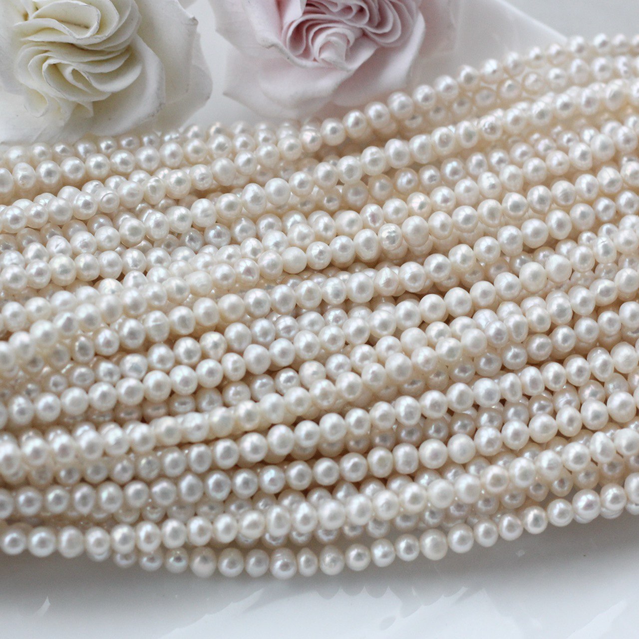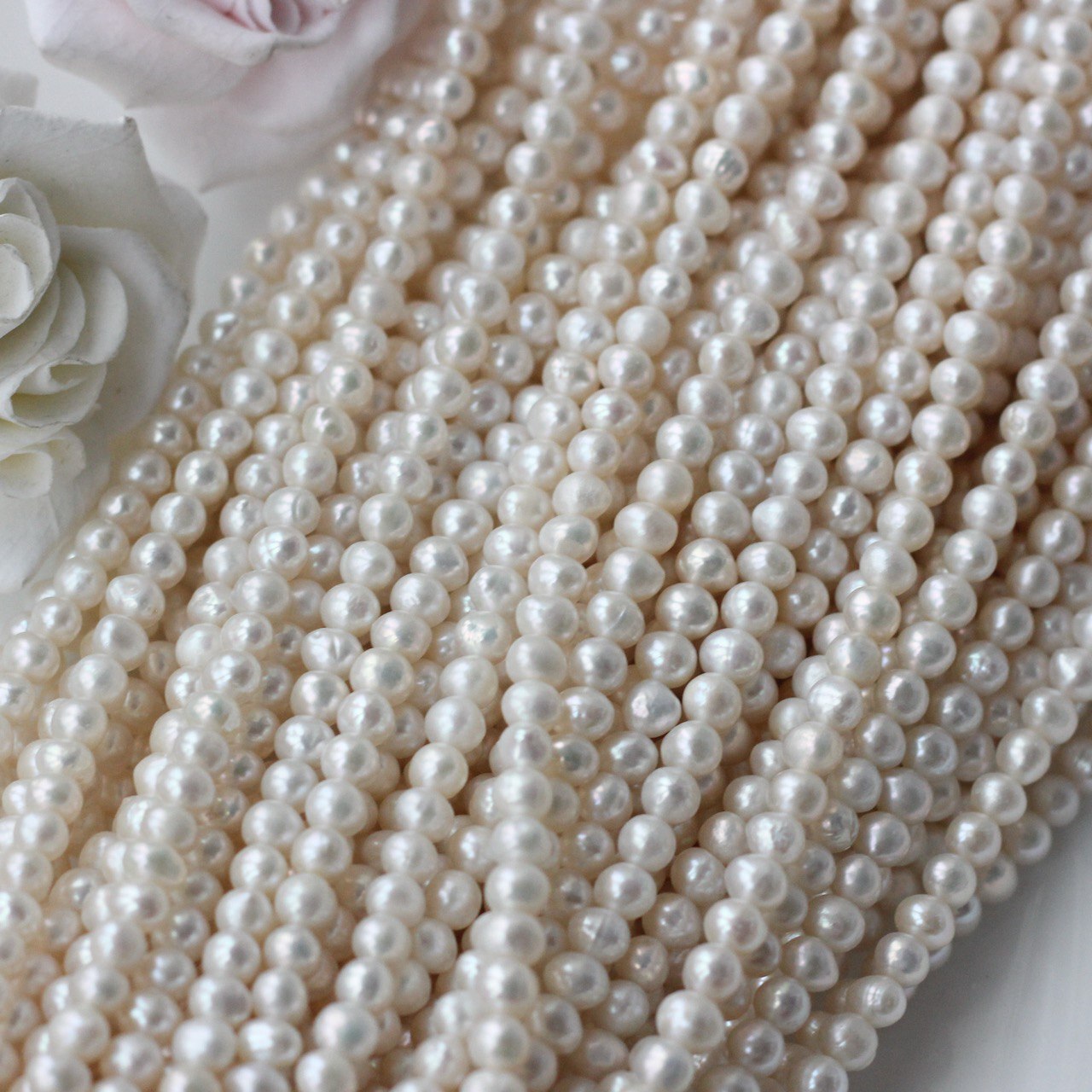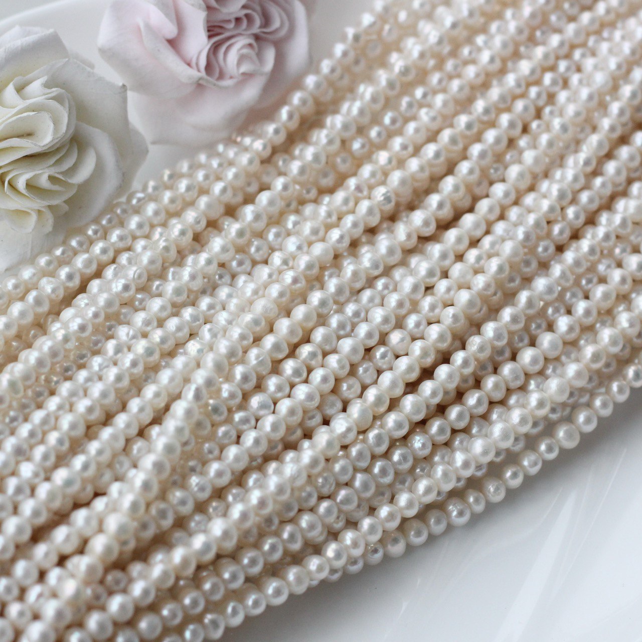 Натуральный речной жемчуг молочного оттенка с мягким, естественным перламутровым блеском. Слегка приплюснутая форма придаёт бусинам живую фактуру и делает готовые украшения более «воздушными» и природными на вид