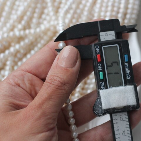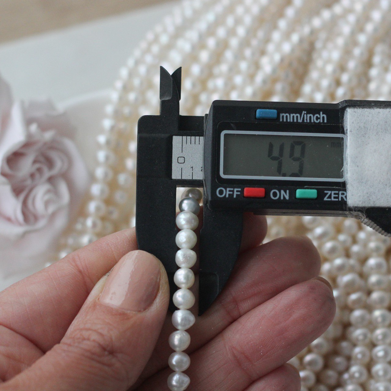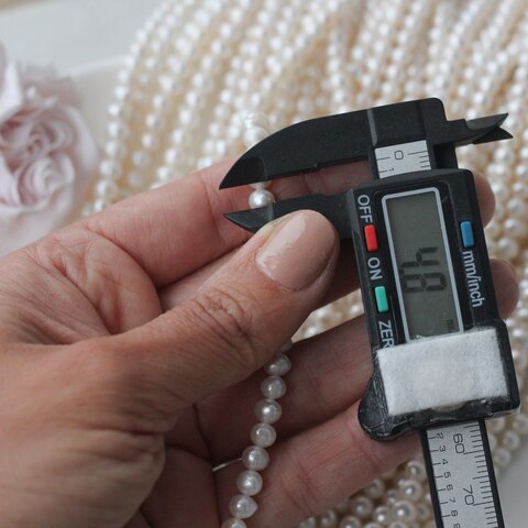 📏 Обратите внимание: размер указывается в среднем по нити, отдельные жемчужины могут иметь естественные отклонения по форме и размеру — это особенность натурального материала. Для наглядности приложили фото с замерами жемчуга. Каждая нить индивидуальна, могут быть расхождения 0,2 мм