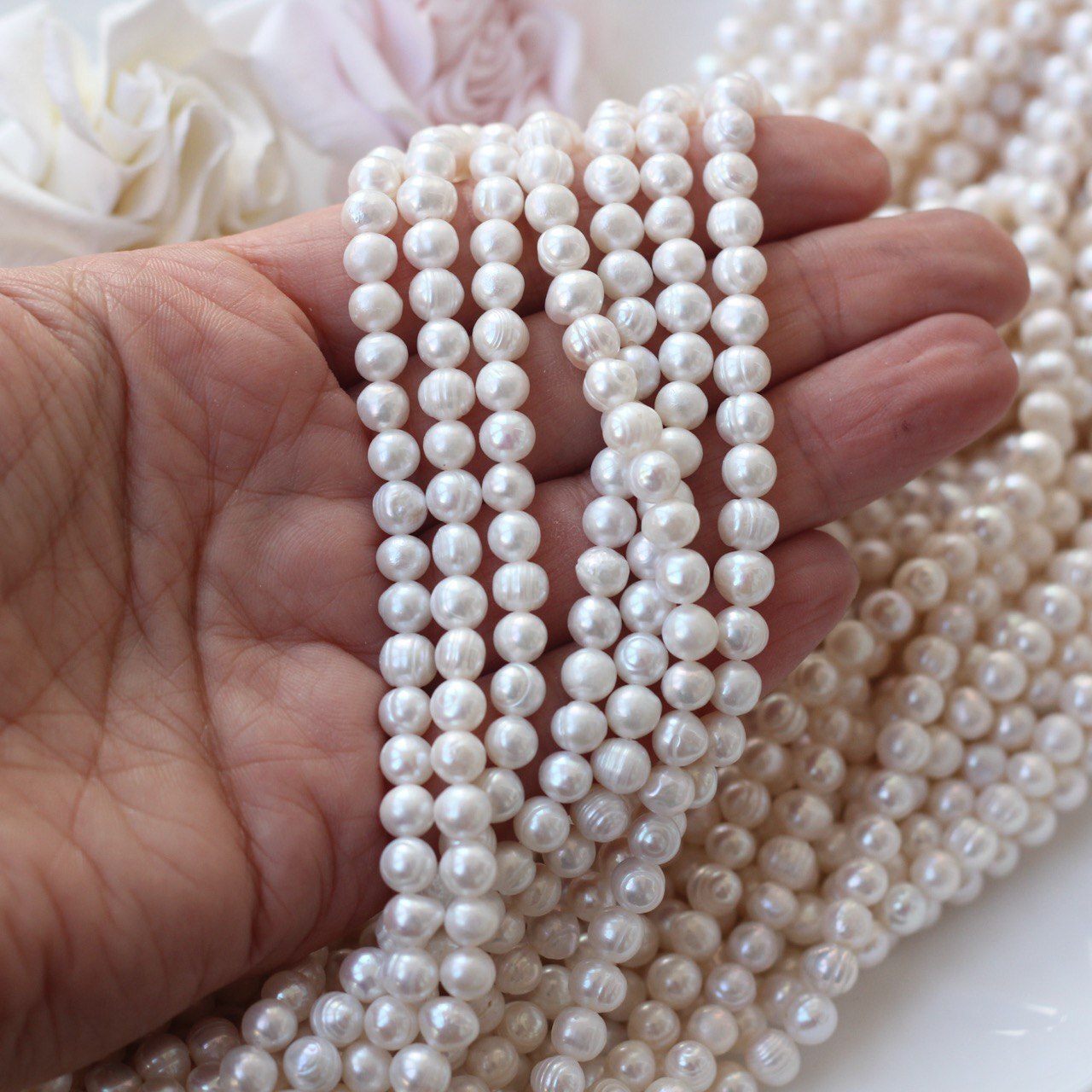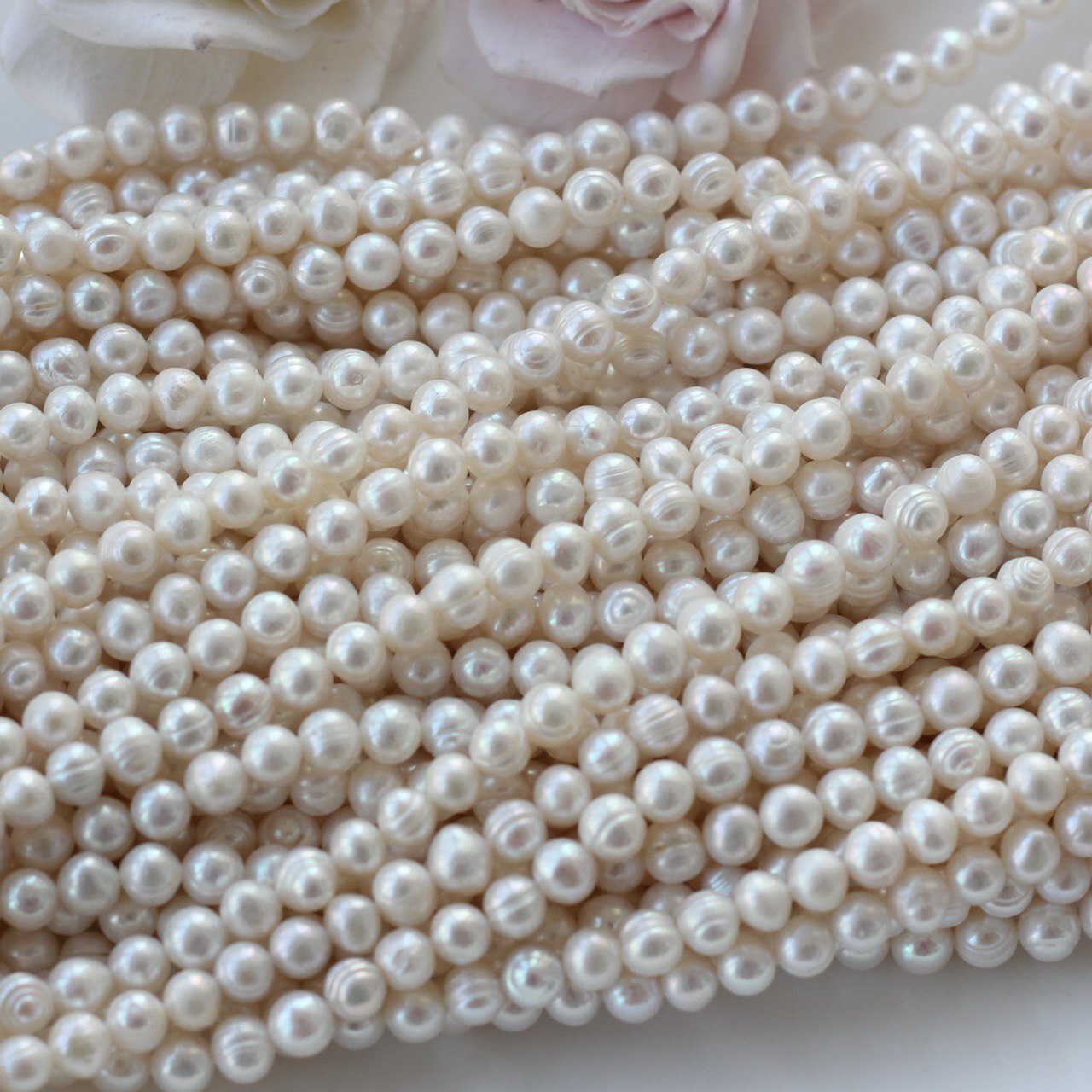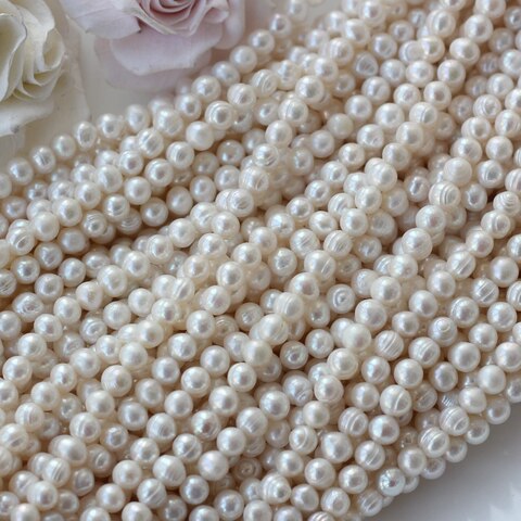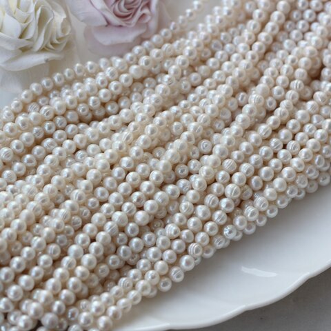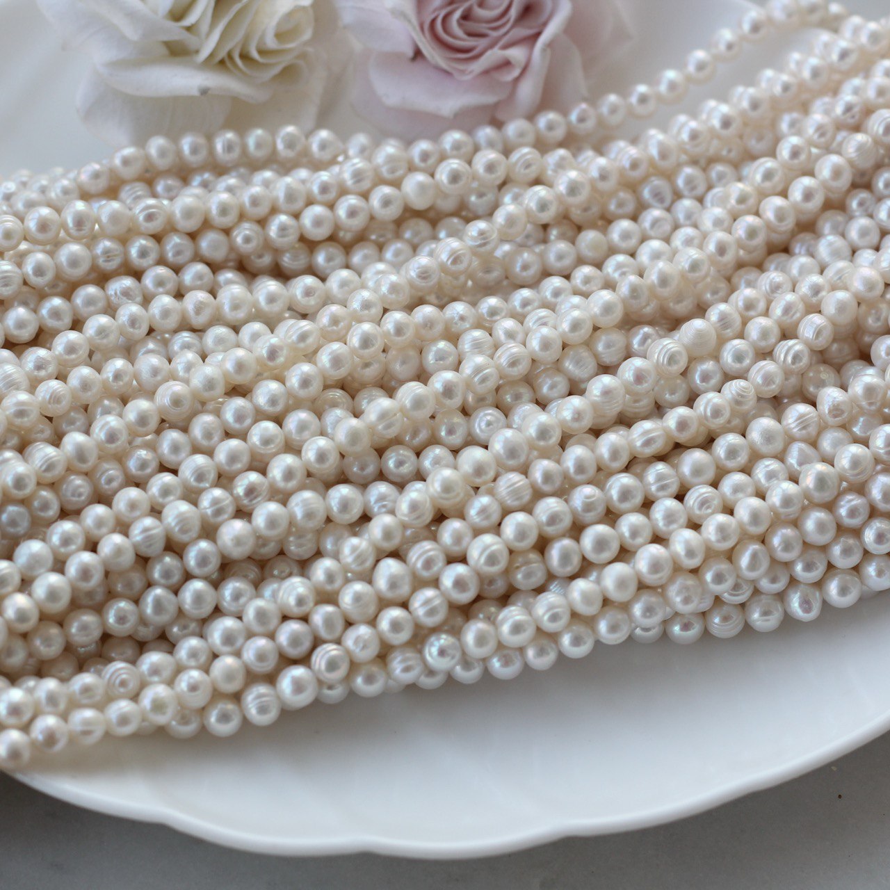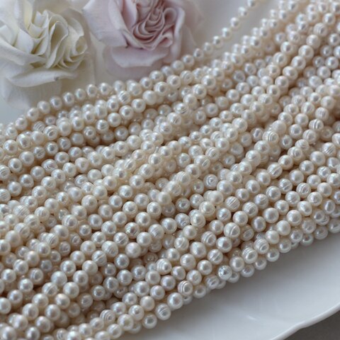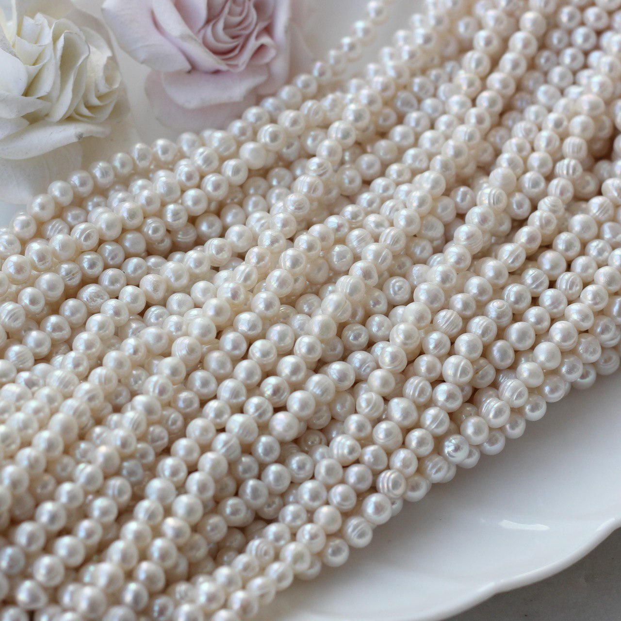 Натуральный речной жемчуг классической округлой формы с мягким перламутровым блеском. Молочный оттенок красиво переливается при разном освещении и придаёт украшениям аккуратность, нежность и утончённость.