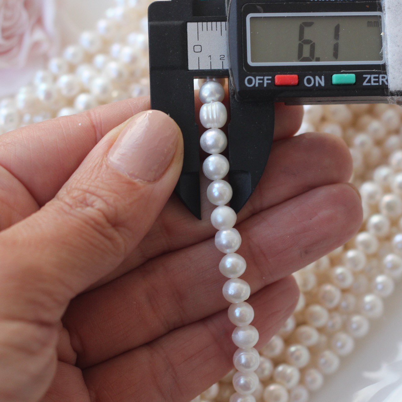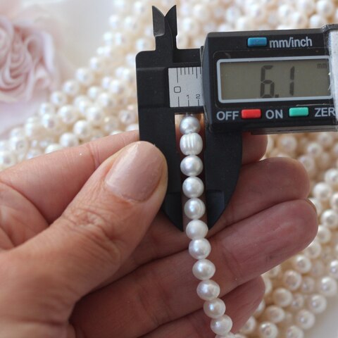 📏 Обратите внимание: размер указывается в среднем по нити, отдельные жемчужины могут иметь естественные отклонения по форме и размеру — это особенность натурального материала. Для наглядности приложили фото с замерами жемчуга. Каждая нить индивидуальна, могут быть расхождения 0,2 мм