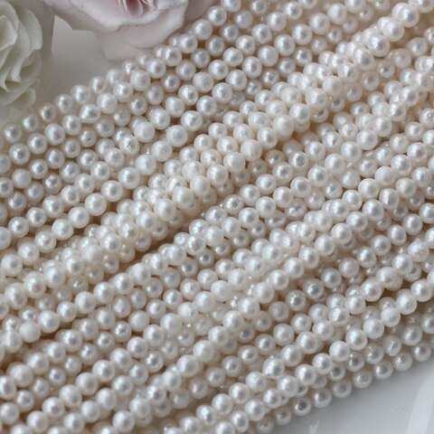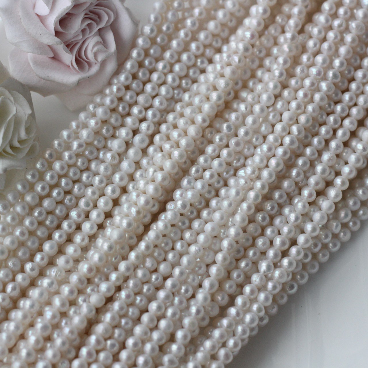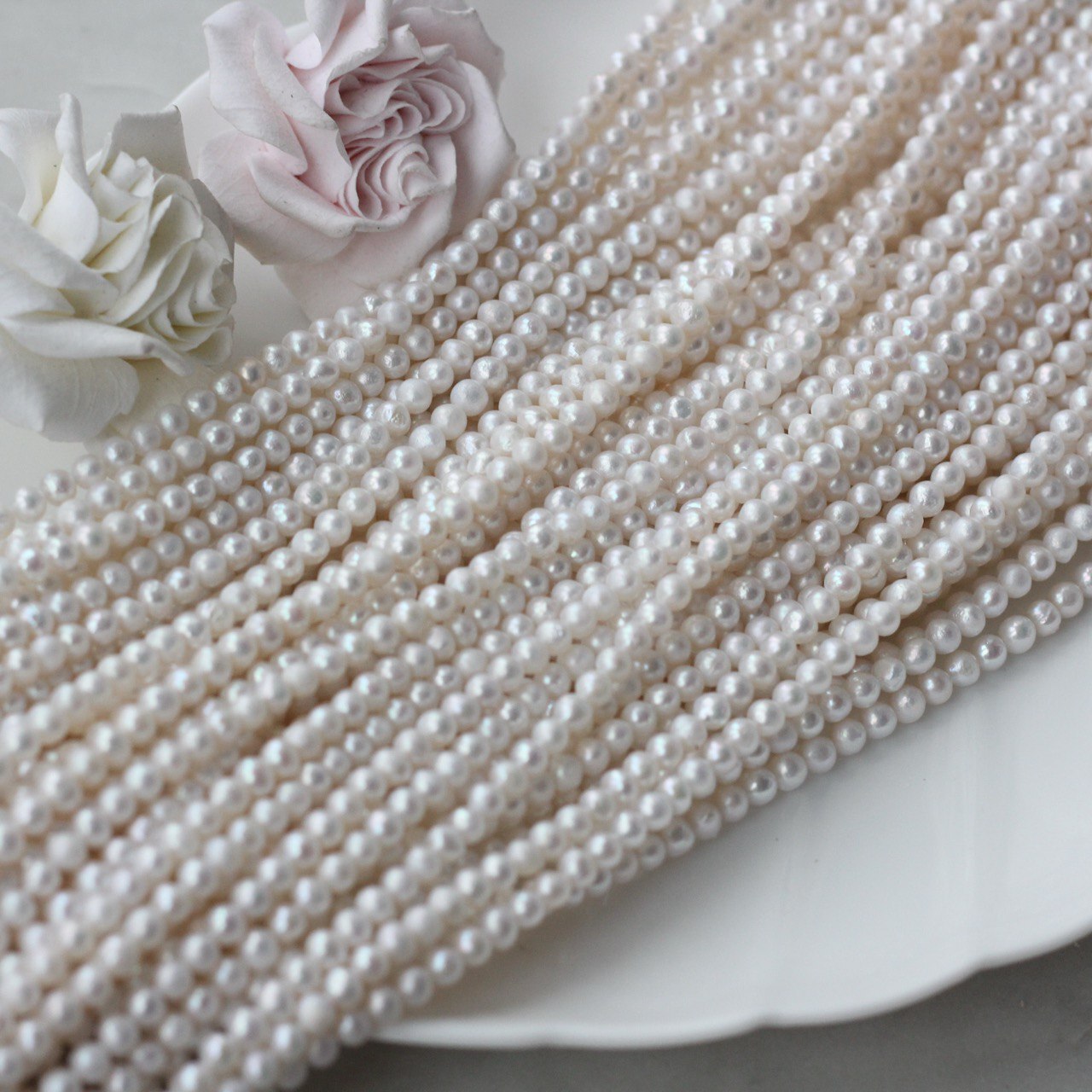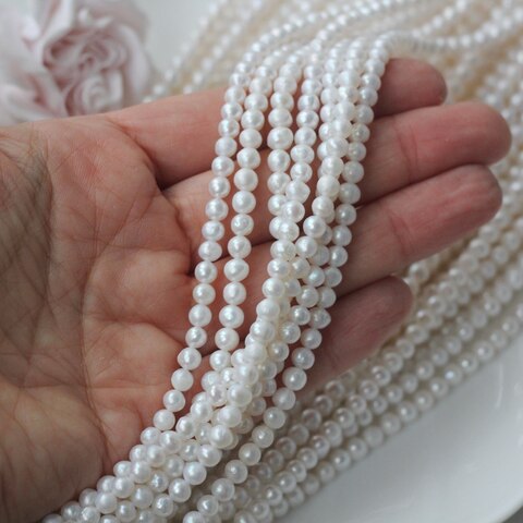 Натуральный речной жемчуг молочного оттенка с мягким, естественным перламутровым блеском. Слегка приплюснутая форма придаёт бусинам живую фактуру и делает готовые украшения более «воздушными» и природными на вид