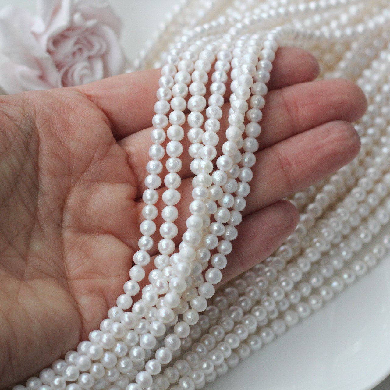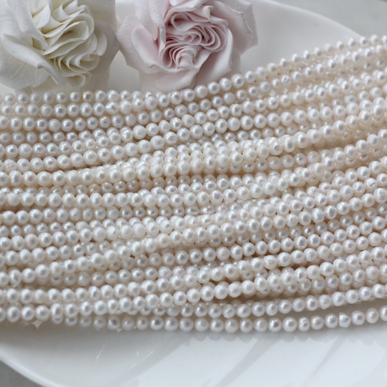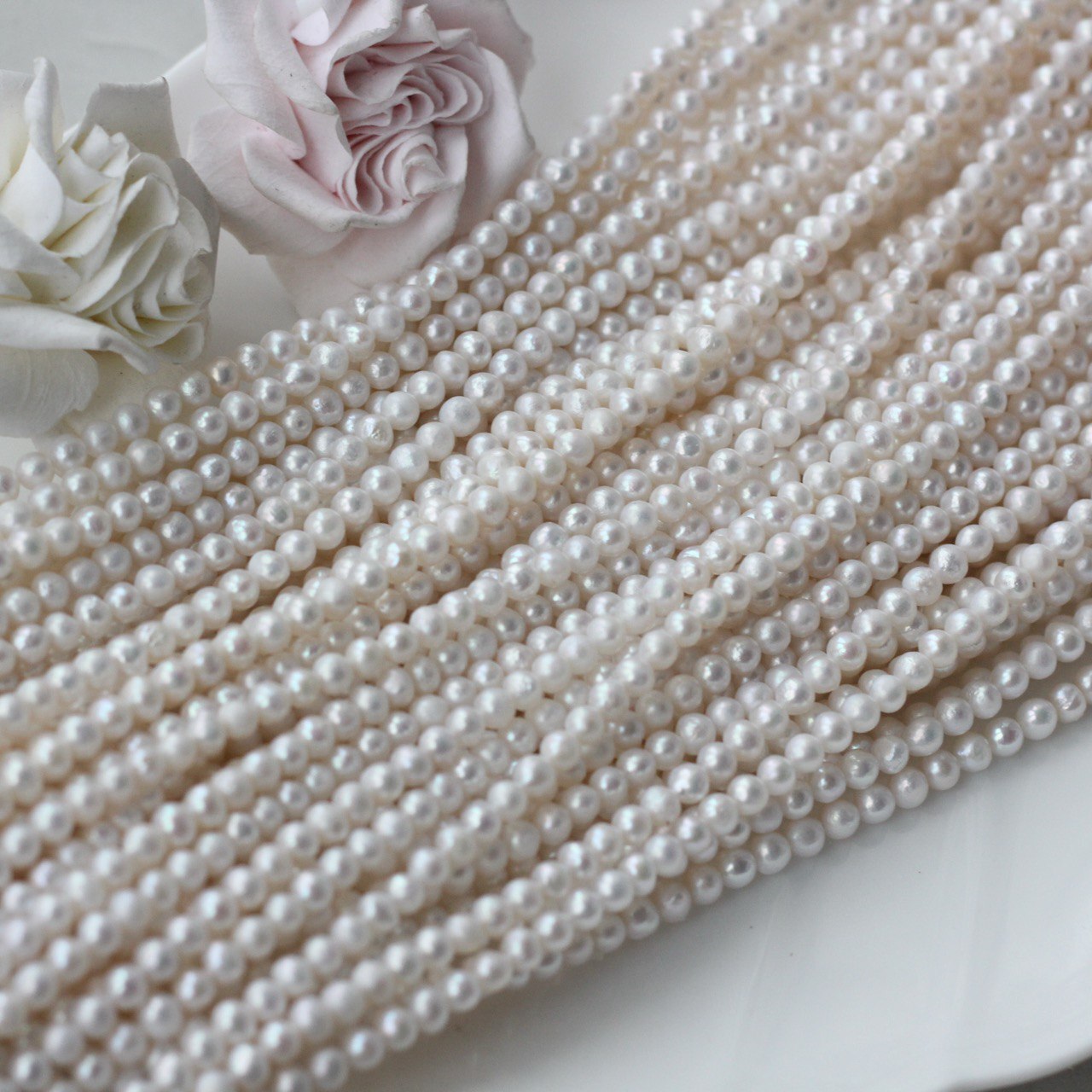 Натуральный речной жемчуг молочного оттенка с мягким, естественным перламутровым блеском. Слегка приплюснутая форма придаёт бусинам живую фактуру и делает готовые украшения более «воздушными» и природными на вид