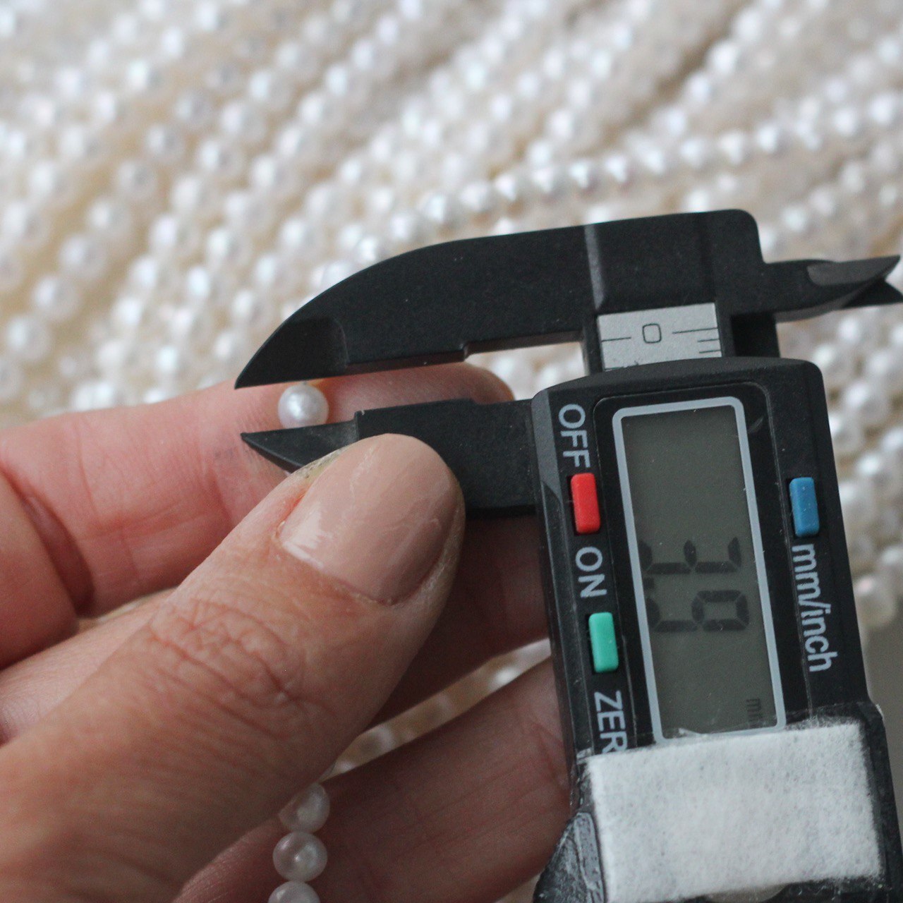 📏 Обратите внимание: размер указывается в среднем по нити, отдельные жемчужины могут иметь естественные отклонения по форме и размеру — это особенность натурального материала. Для наглядности приложили фото с замерами жемчуга. Каждая нить индивидуальна, могут быть расхождения 0,2 мм