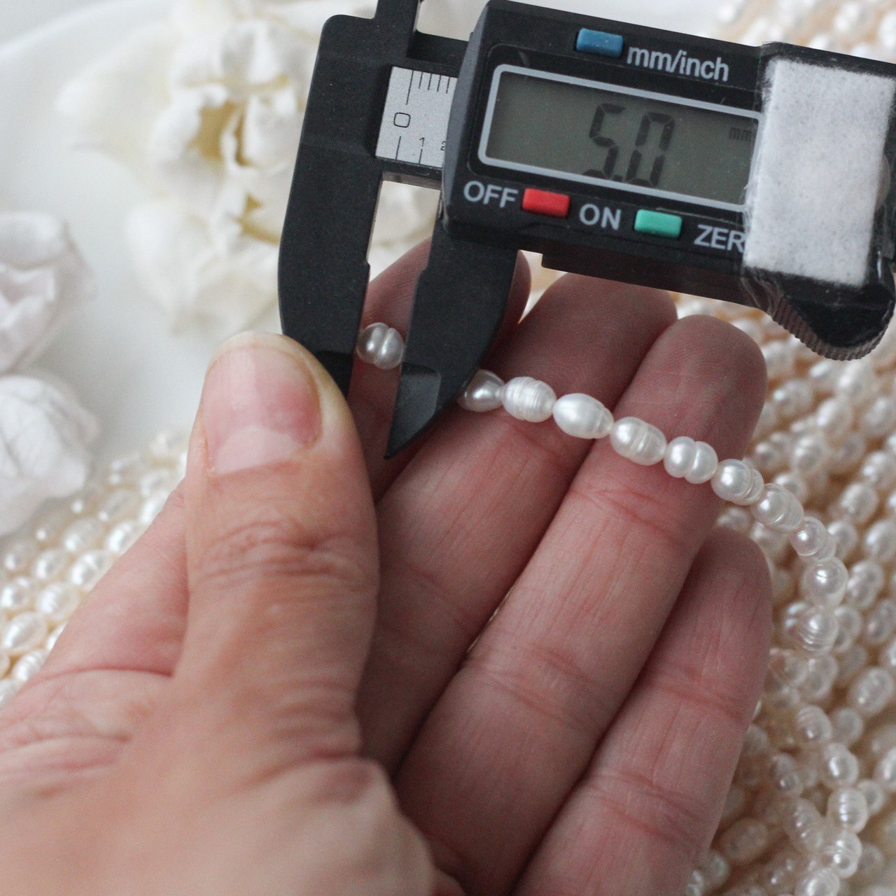 Аккуратные удлинённые бусины из натурального речного жемчуга — идеальный материал для утончённых украшений, с большое количество бороздок только подтверждает его природное происхождение и подчеркивает уникальность каждой жемчужины. Лёгкий перламутровый блеск и изящная форма «рис» делают этот жемчуг универсальным: он подходит для колье, браслетов, серёг и тонких акцентных деталей.