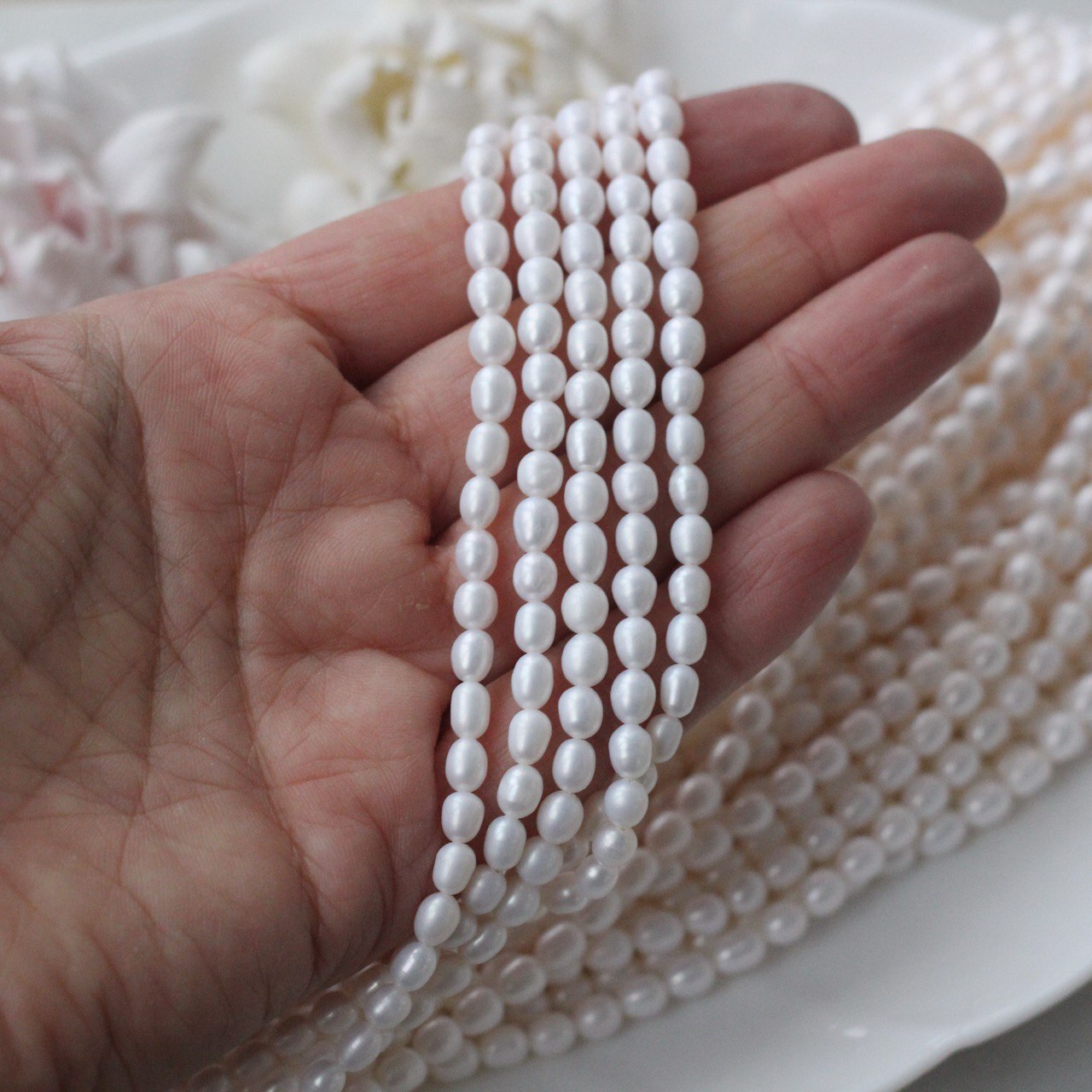 Аккуратные удлинённые бусины из натурального речного жемчуга — идеальный материал для утончённых украшений. Лёгкий перламутровый блеск и изящная форма «рис» делают этот жемчуг универсальным: он подходит для колье, браслетов, серёг и тонких акцентных деталей.