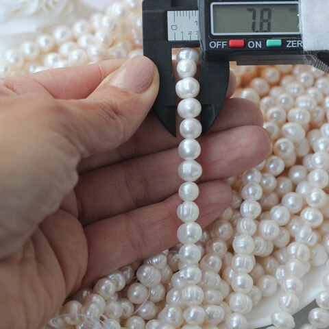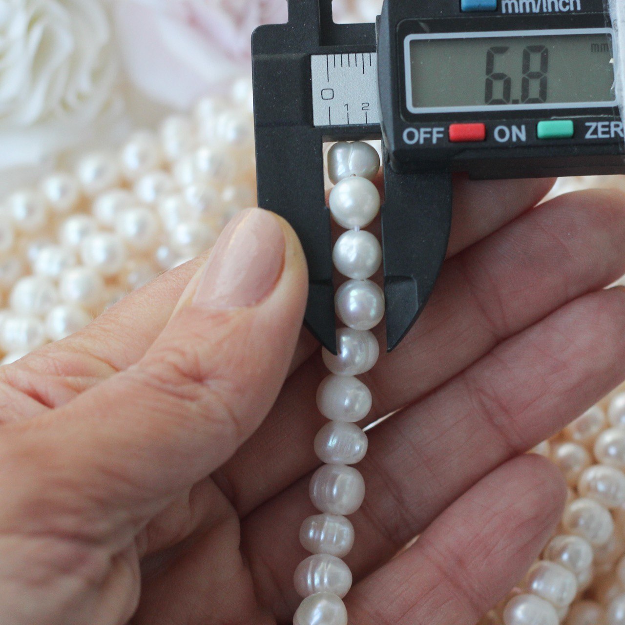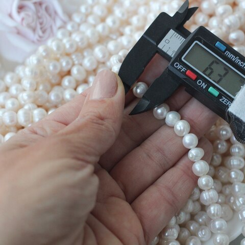 📏 Обратите внимание: размер указывается в среднем по нити, отдельные жемчужины могут иметь естественные отклонения по форме и размеру — это особенность натурального материала. Для наглядности приложили фото с замерами жемчуга. Каждая нить индивидуальна, могут быть расхождения 0,2 мм
