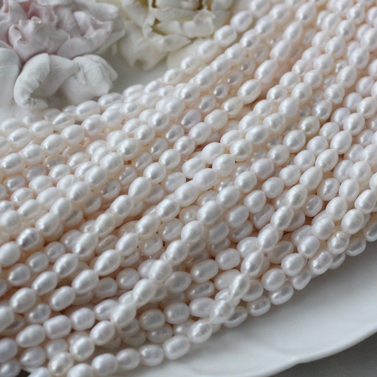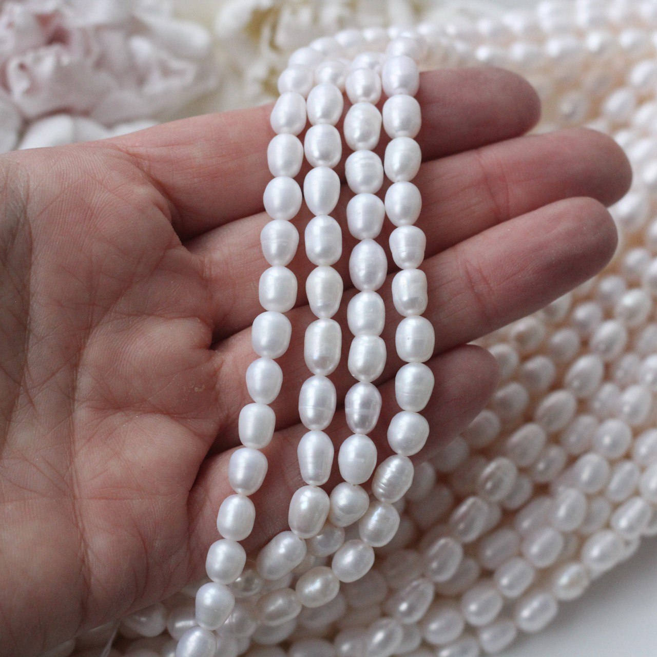 Аккуратные удлинённые бусины из натурального речного жемчуга — идеальный материал для утончённых украшений, с большое количество бороздок только подтверждает его природное происхождение и подчеркивает уникальность каждой жемчужины. Лёгкий перламутровый блеск и изящная форма «рис» делают этот жемчуг универсальным: он подходит для колье, браслетов, серёг и тонких акцентных деталей.