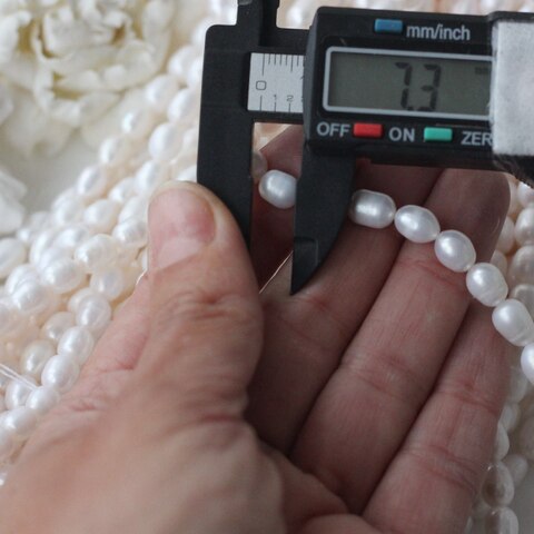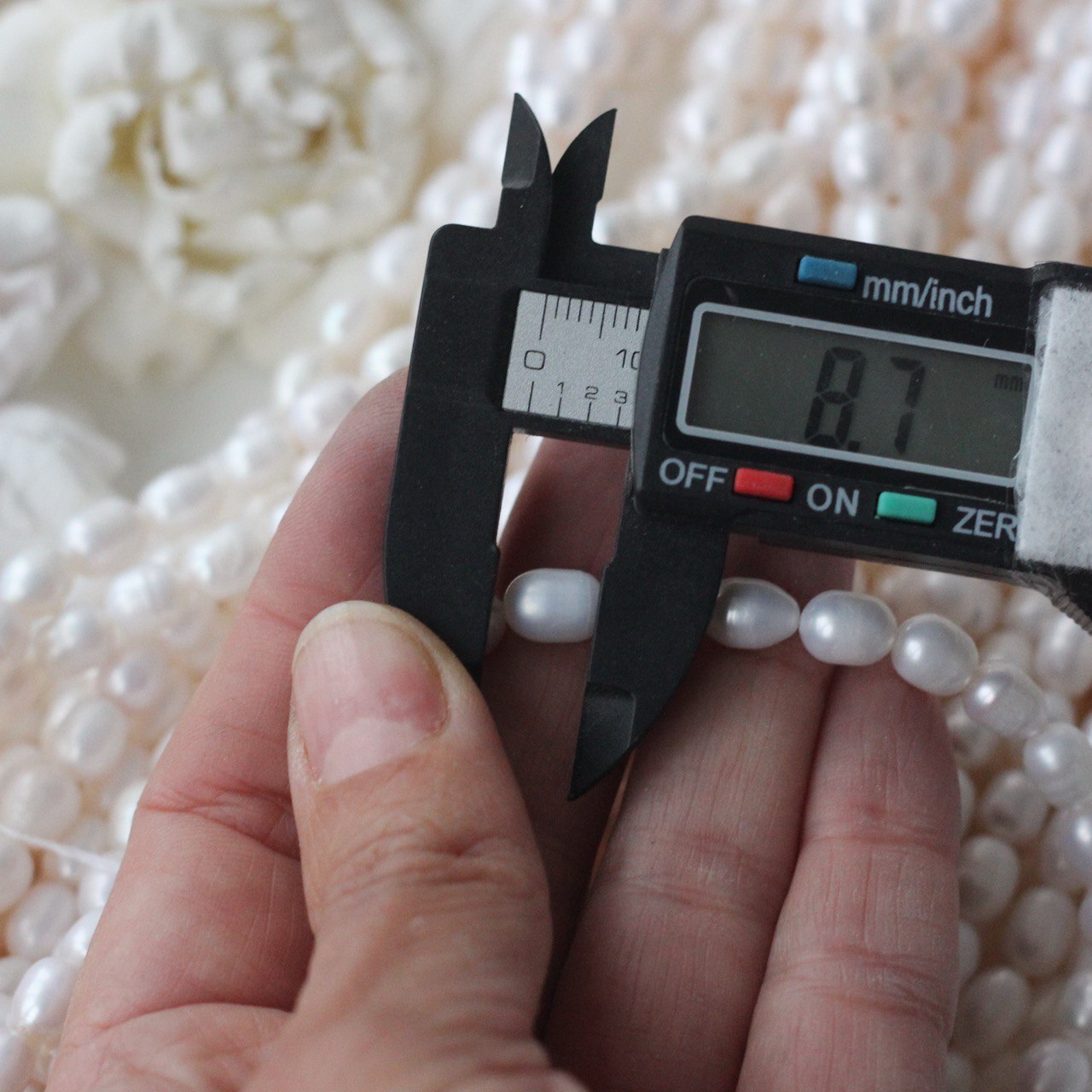 📏 Обратите внимание: размер указывается в среднем по нити, отдельные жемчужины могут иметь естественные отклонения по форме и размеру — это особенность натурального материала. Для наглядности приложили фото с замерами жемчуга. Каждая нить индивидуальна, могут быть расхождения 0,2 мм