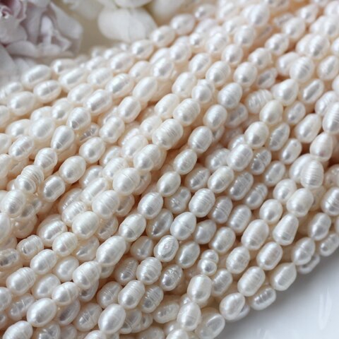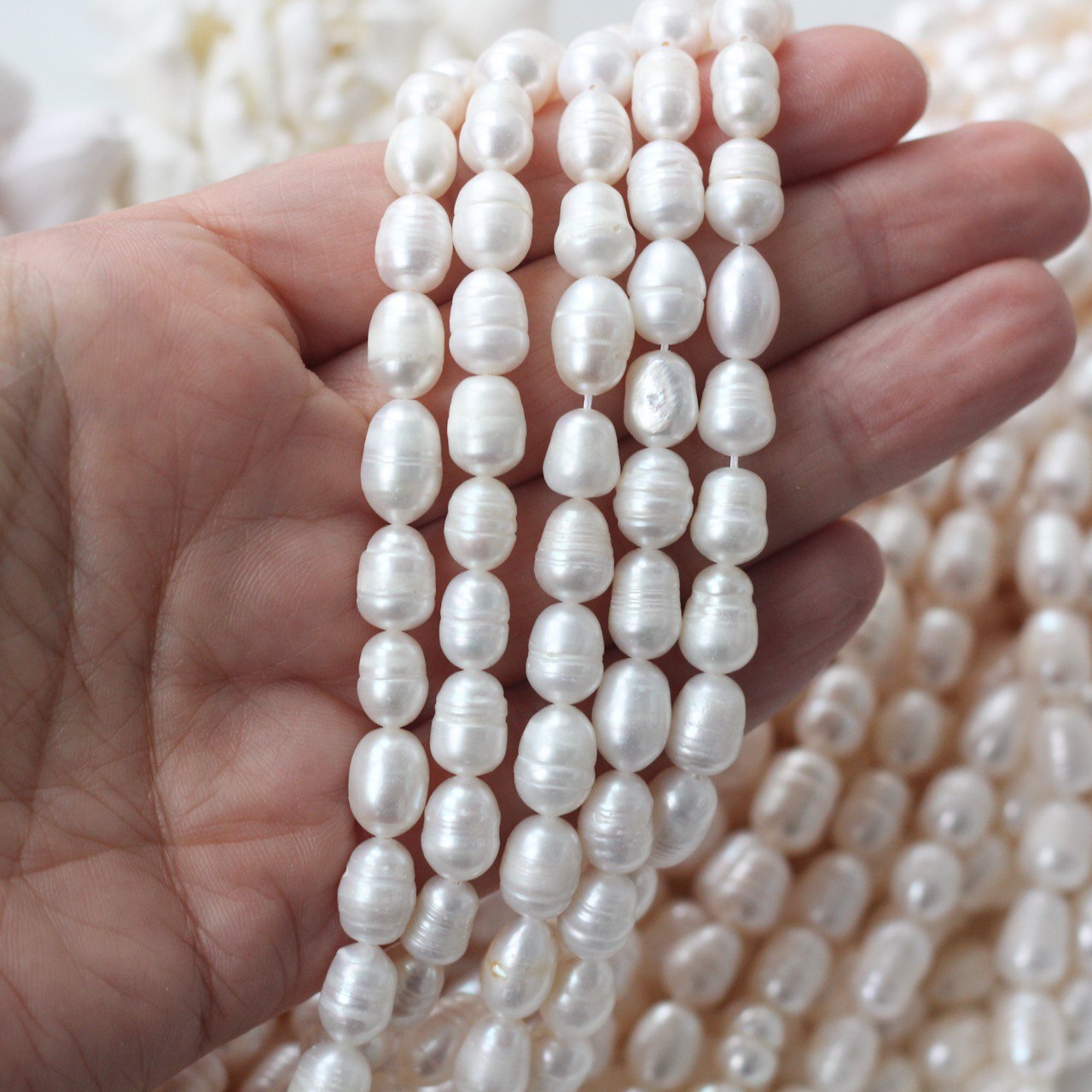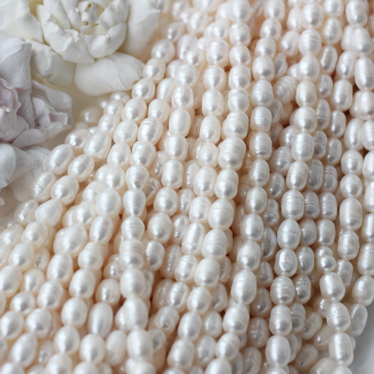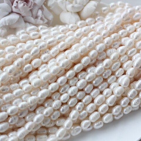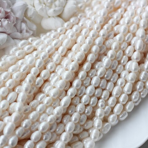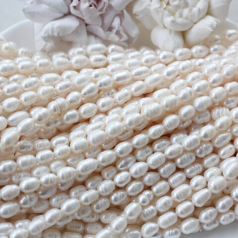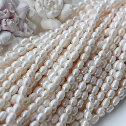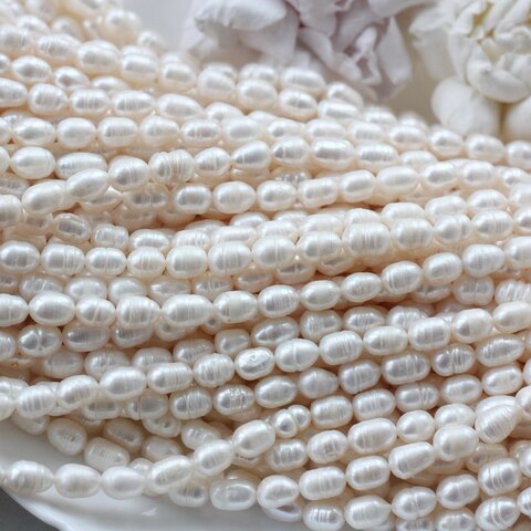 Аккуратные удлинённые бусины из натурального речного жемчуга — идеальный материал для утончённых украшений, небольшое количество бороздок только подтверждает его природное происхождение и подчеркивает уникальность каждой жемчужины. Лёгкий перламутровый блеск и изящная форма «рис» делают этот жемчуг универсальным: он подходит для колье, браслетов, серёг и тонких акцентных деталей.