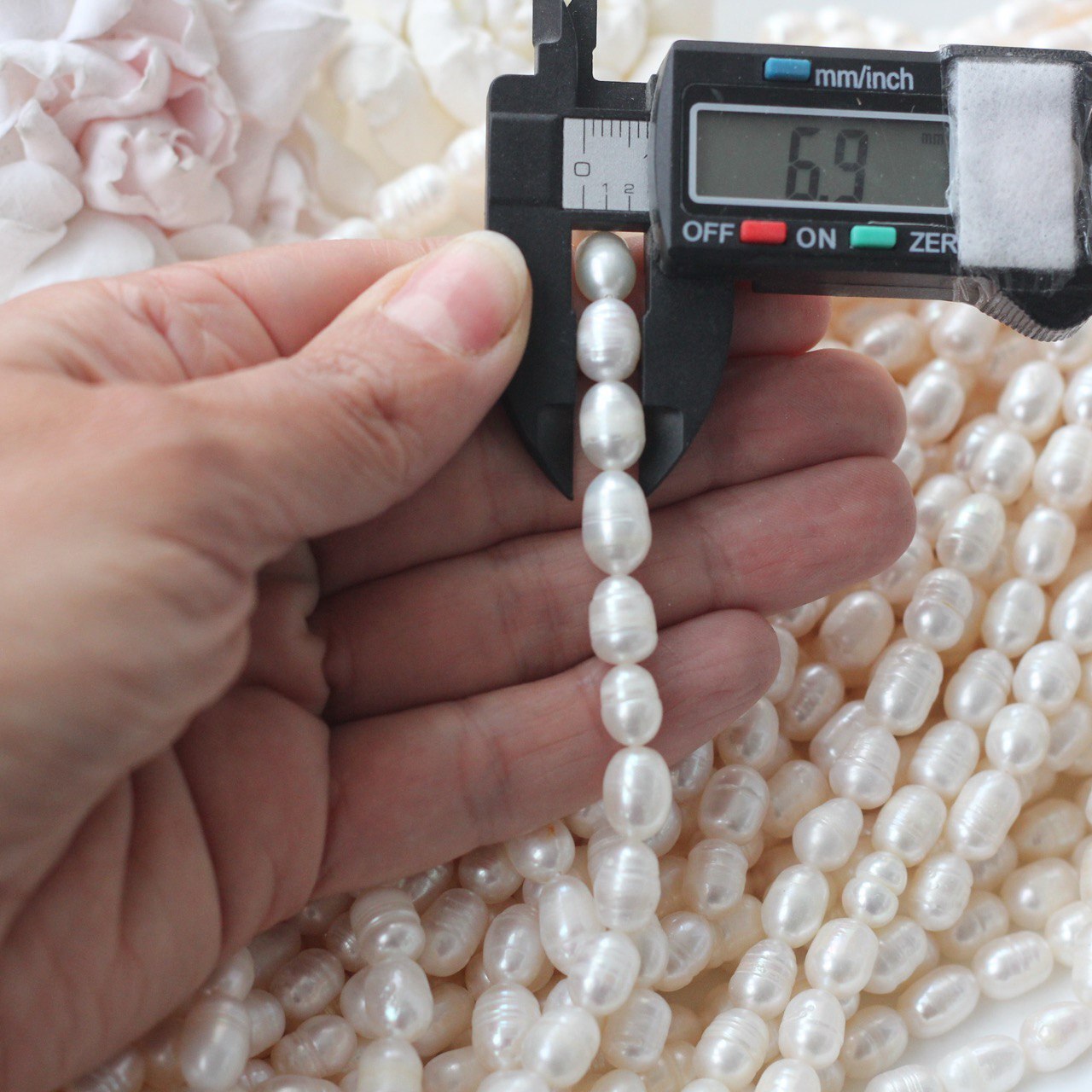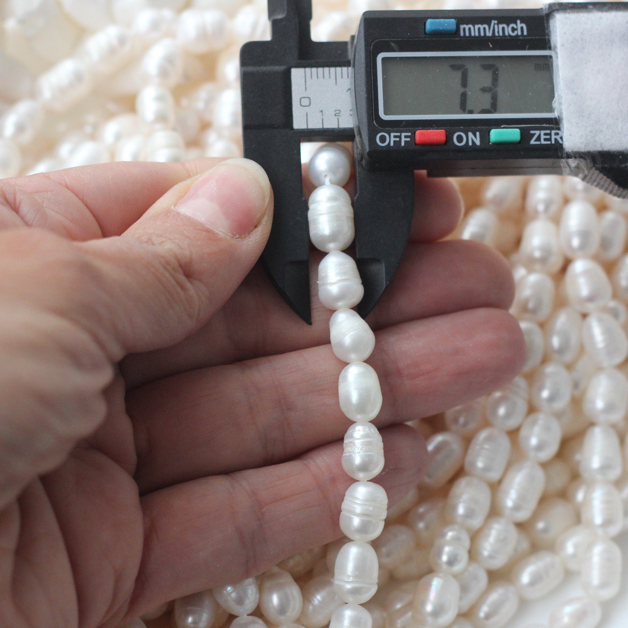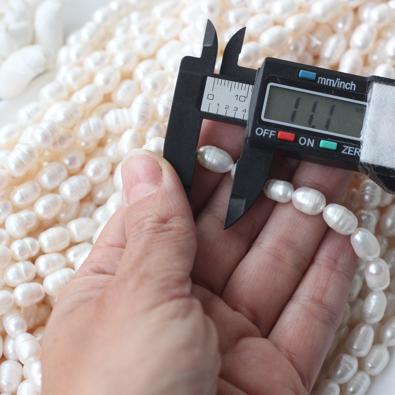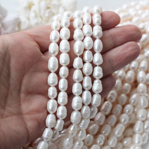 Аккуратные удлинённые бусины из натурального речного жемчуга — идеальный материал для утончённых украшений, небольшое количество бороздок только подтверждает его природное происхождение и подчеркивает уникальность каждой жемчужины. Лёгкий перламутровый блеск и изящная форма «рис» делают этот жемчуг универсальным: он подходит для колье, браслетов, серёг и тонких акцентных деталей.