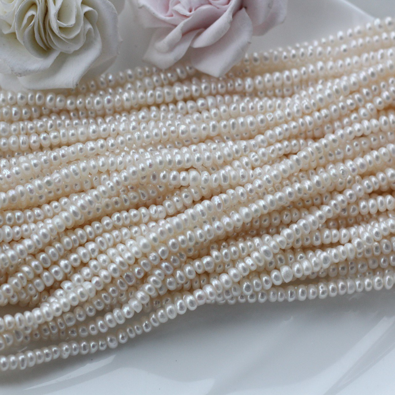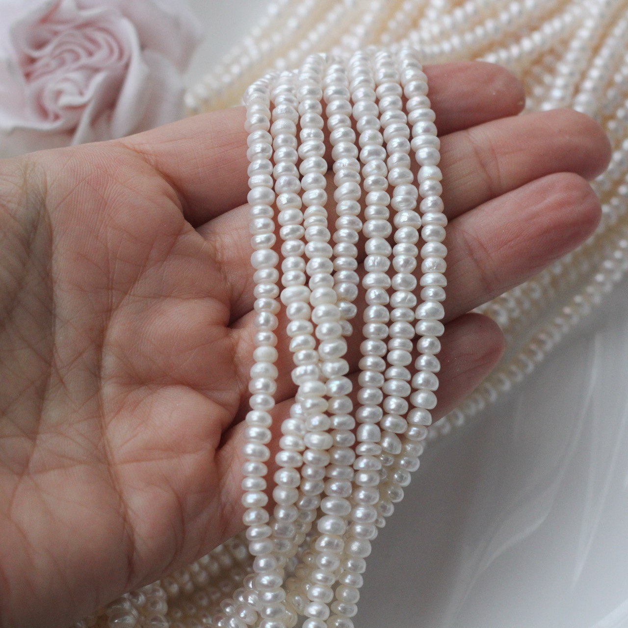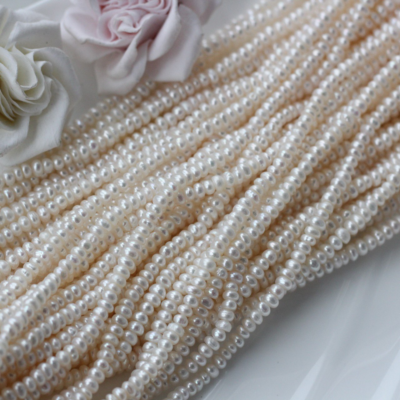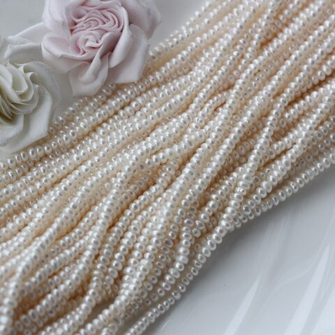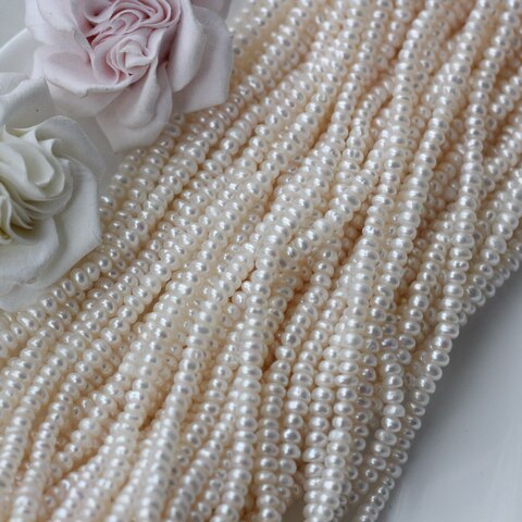Натуральный речной жемчуг молочного оттенка с мягким перламутровым блеском. Форма «рондель» — деликатно приплюснутая, благодаря чему бусины красиво ложатся в нити и создают аккуратную, гармоничную линию в украшениях.