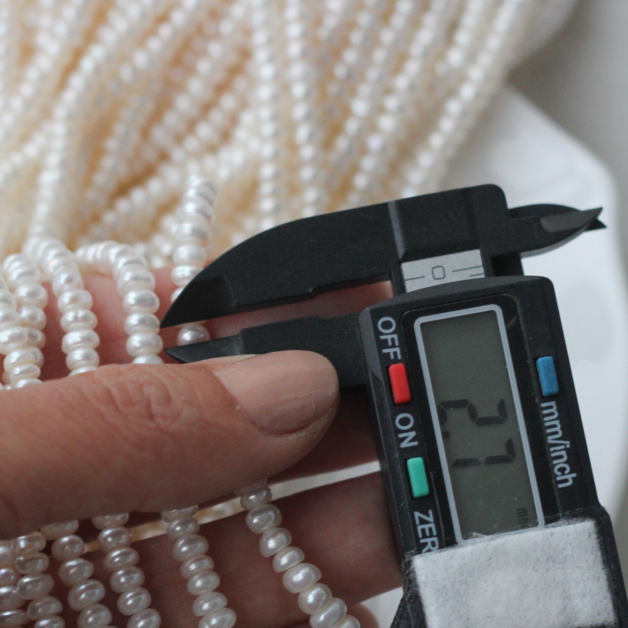 📏 Обратите внимание: размер указывается в среднем по нити, отдельные жемчужины могут иметь естественные отклонения по форме и размеру — это особенность натурального материала. Для наглядности приложили фото с замерами жемчуга. Каждая нить индивидуальна, могут быть расхождения 0,2 мм